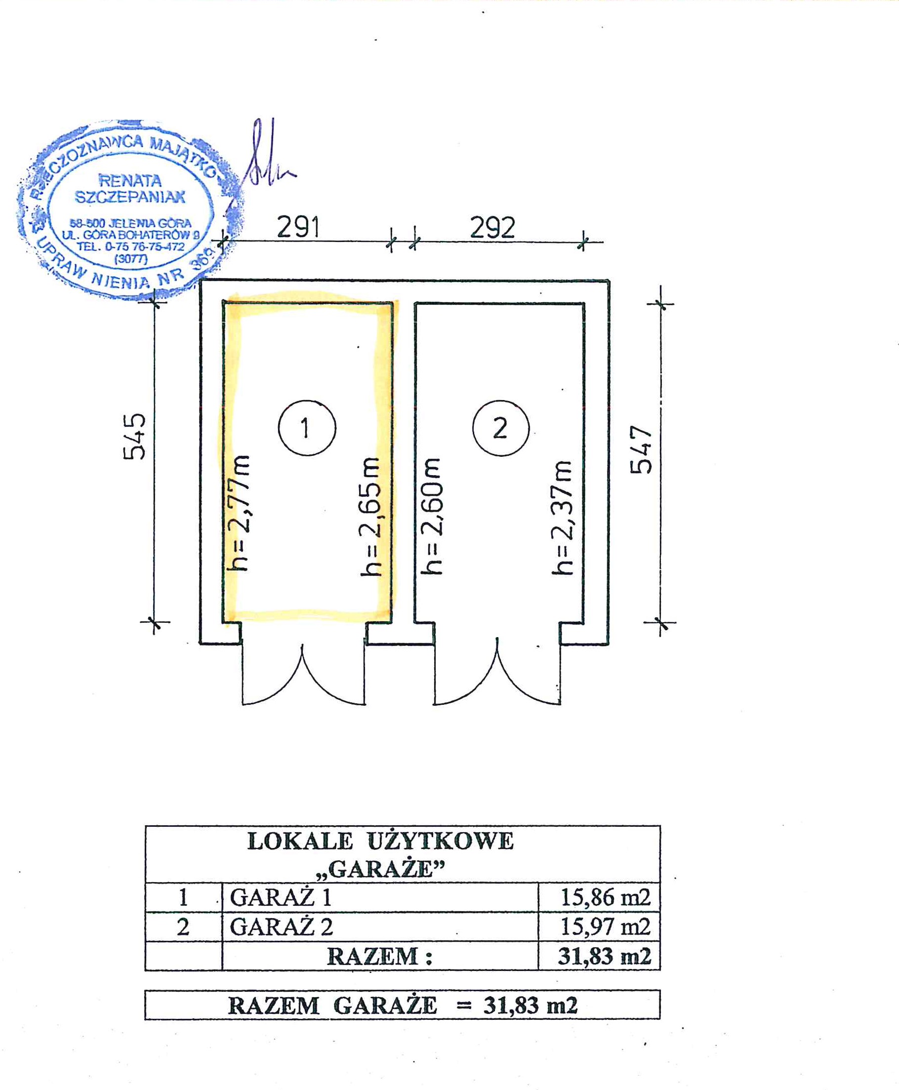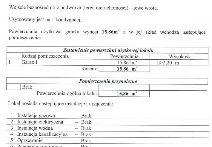 z wejściem bezpośrednio z podwórza (teren nieruchomości) – lewe wrota, położony w budynku niemieszkalnym, parterowym, jednokondygnacyjnym, składającym się z dwóch lokali użytkowych – garaże.